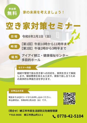 空き家を所有している方、空き家になる前に将来のことを考えたい方、是非ご参加ください。