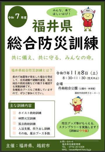 ※翌日9日(日曜日)には鯖江市総合防災訓練が実施されます!
