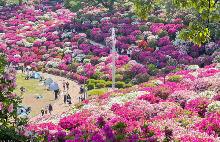 「日本の歴史公園100選」認定のさばえのシンボル公園です。春には約5万株のつつじが咲き乱れる、日本海側随一のつつじの名所です。