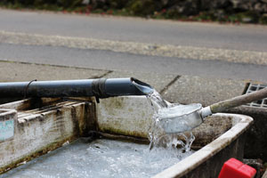 上戸口町にあるお清水です。地元の歴史や名所が残る三峯山のふもとにあり、三峯山が水源となっている。三峯山には水質豊かな「刀那の滝」もあり、山麓の恵みのお清水です。
