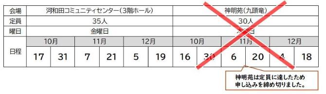 3期目(来年1〜3月)は神明苑とハーツさばえで実施予定です。