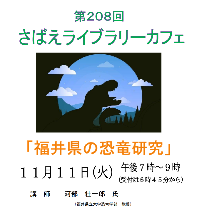第208回さばえライブラリーカフェ「福井県の恐竜研究」