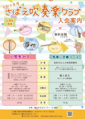 令和8年度さばえ吹奏楽クラブ入会案内(PDF:5,636KB)