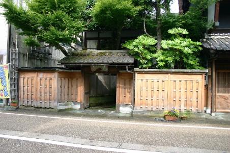 表門両脇の板塀は、近年補修されているが、表門とともに屋根は笏谷石瓦葺で、調理棟や前庭の樹木と一体となって通り沿いに優れた景観を醸し出している。