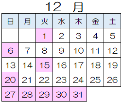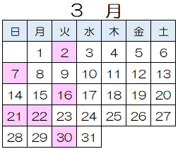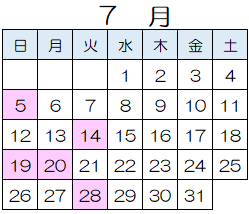 令和7年度休館日カレンダー