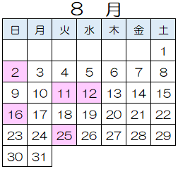 令和8年度休館日カレンダー