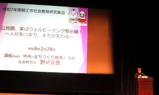 浜松市役所の野嶋京登氏をお招きし、公民館が地域住民の幸福感(ウェルビーイング)を育む場であるという、活気に満ちたお話をいただきました。