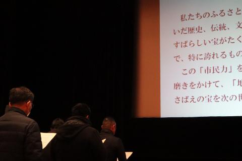 集会の締めくくりとして、これからも学びと実践を繰り返し、社会を豊かにすることを目指す「教育による持続可能なまちづくり宣言」を行いました。