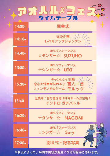 「アオハル×フェス」は、9月27日(土曜日)に無事開催、終了いたしました。