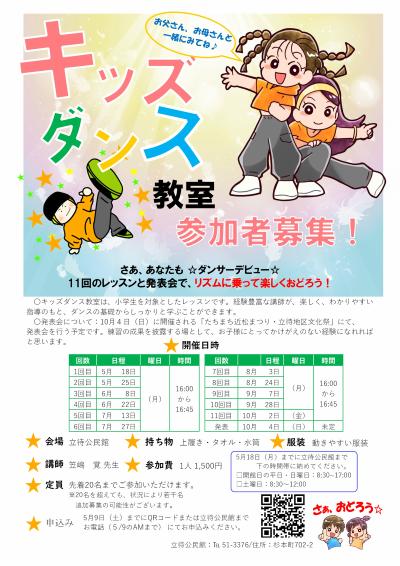 立待地区の小学生を対象とした「キッズダンス教室」を開催いたします!