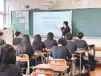 また、旅行費用を稼ぐためにインターネット検索をきっかけに『闇バイト』など危険な情報に接触し、犯罪やトラブルに巻き込まれる可能性があることにも触れ、注意喚起を行いました。生徒からは「契約が身近なものだと初めて知った」「修学旅行中にもトラブルに巻き込まれる可能性があることを知って、楽しむだけでなく、注意も必要だと思った」などの感想が聞かれました。